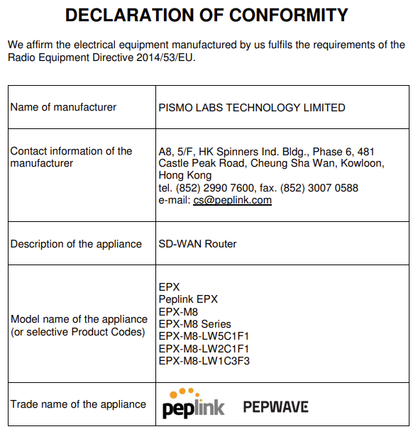 CE Statement for Pepwave Routers ( FlexModule Plus for MC7455 )