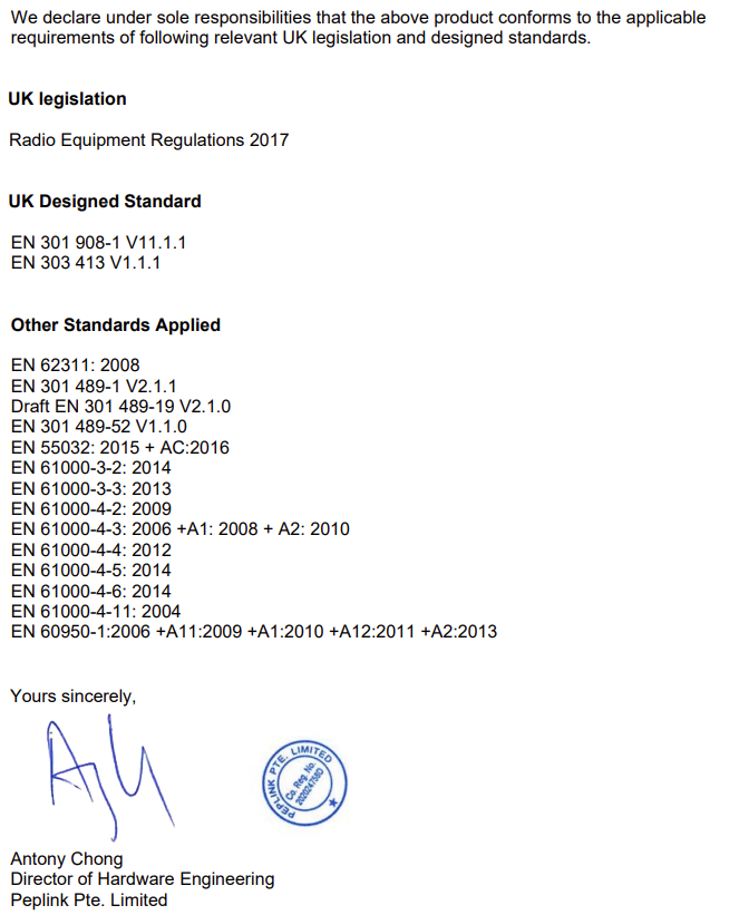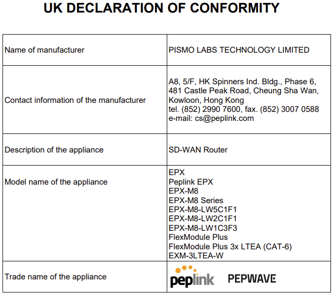 UK Statement for Pepwave Routers ( FlexModule Plus for MC7455 )