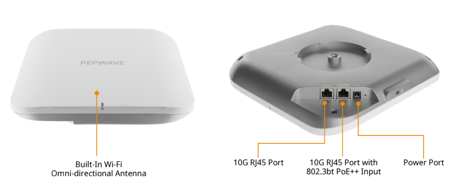 - For those Pepwave AP devices having built-in PoE ports only, using an Ethernet cable to connect to the Power over Ethernet (PoE) switch or PoE injector.