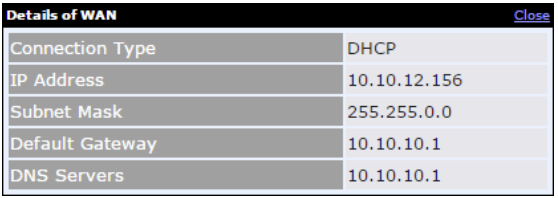 When your access point is connected to a WAN, this field displays the WAN IP address. For more information, click the Details… link, which displays the following:![]() |