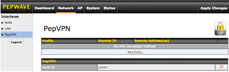 Once you’ve specified a local ID, click the New Profile button to configure PepVPN.