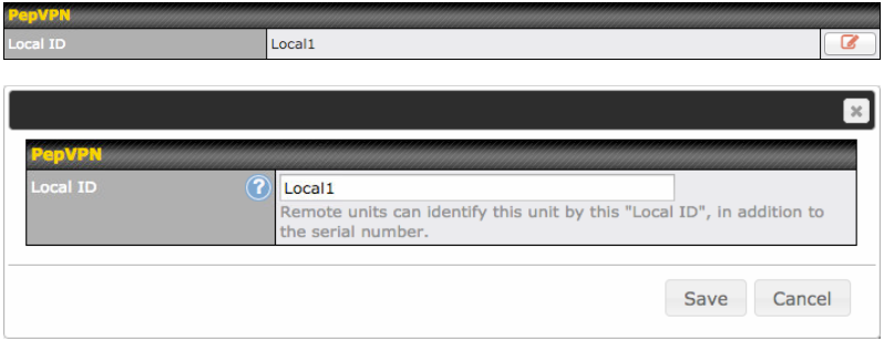 To set up PepVPN, first give your site a local PepVPN ID. To modify an existing local ID, click