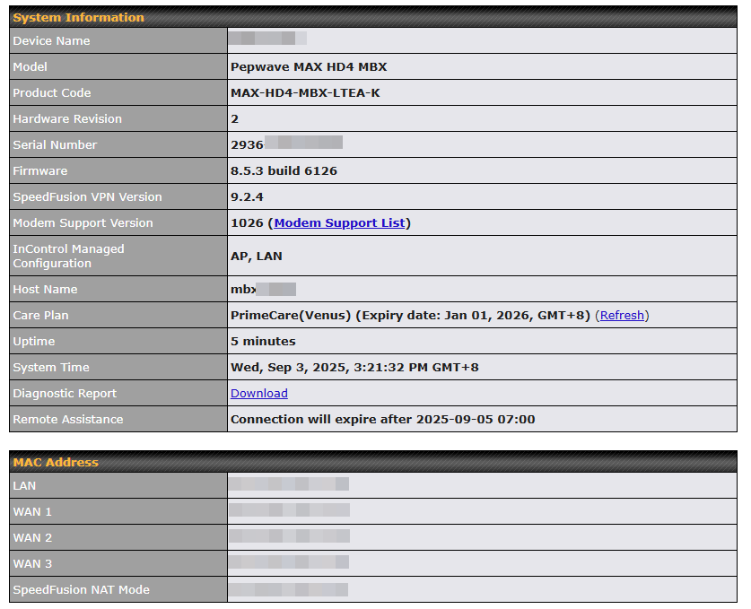 | TCP 2222 | Remote Assistance Direct connection | Peplink Troubleshooting Assistance | Outbound | Enabled |