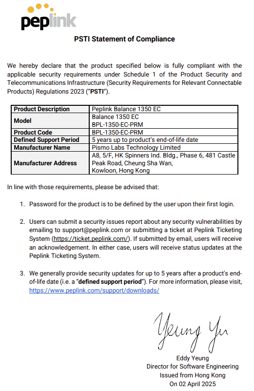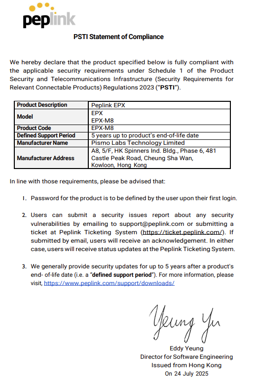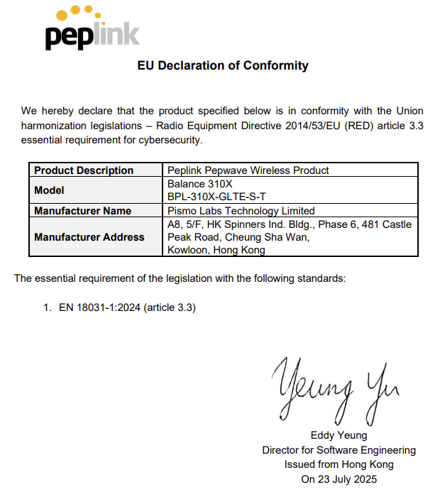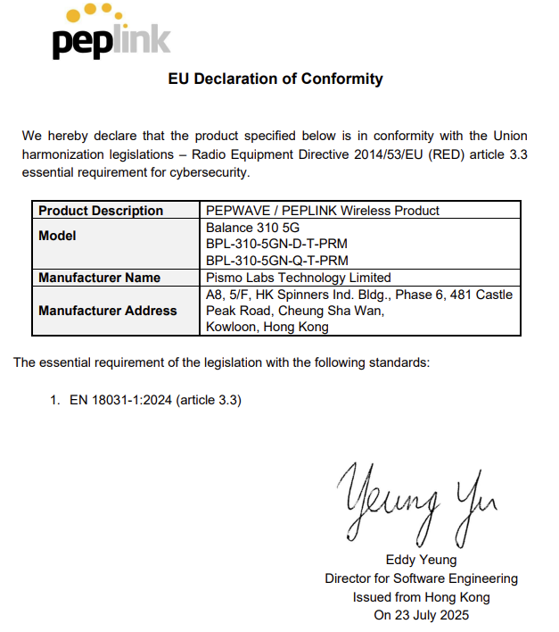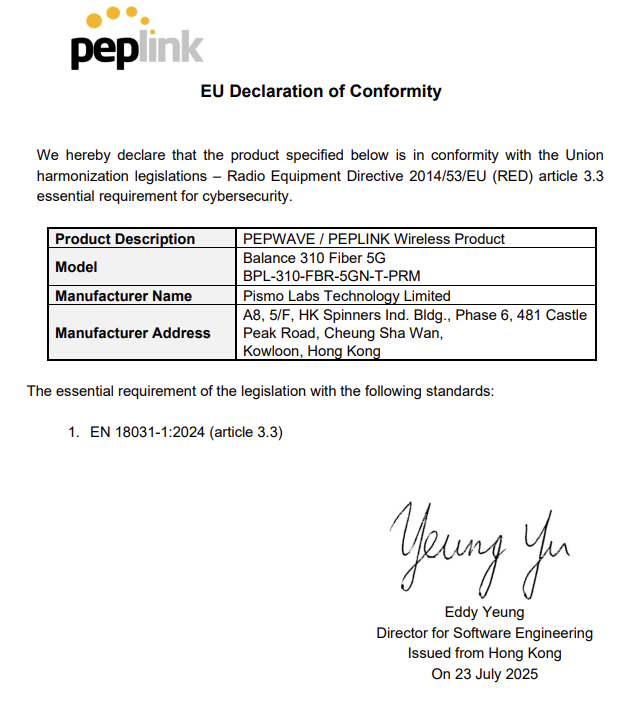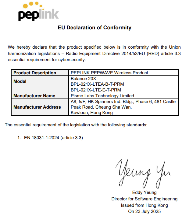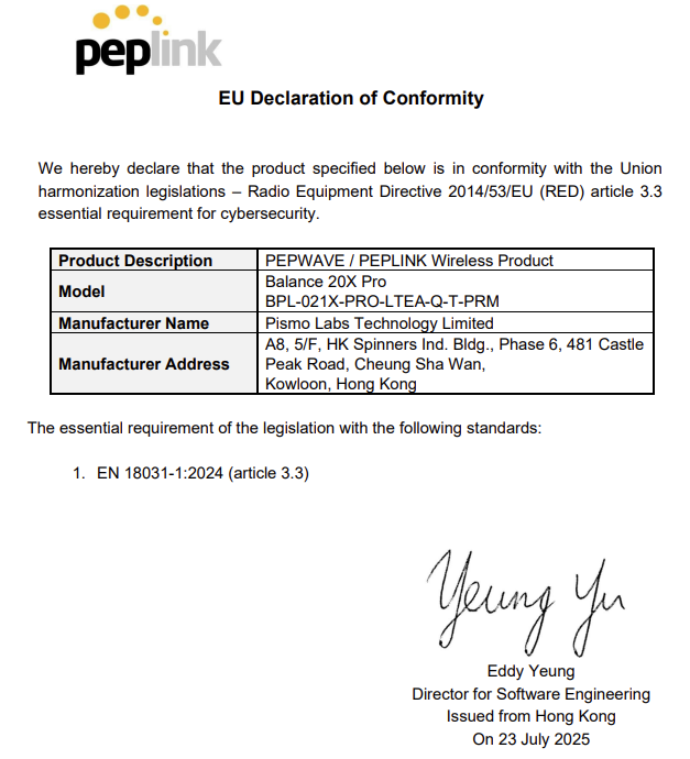 Appendix I. EU Cybersecurity Declaration of Conformity#
