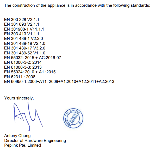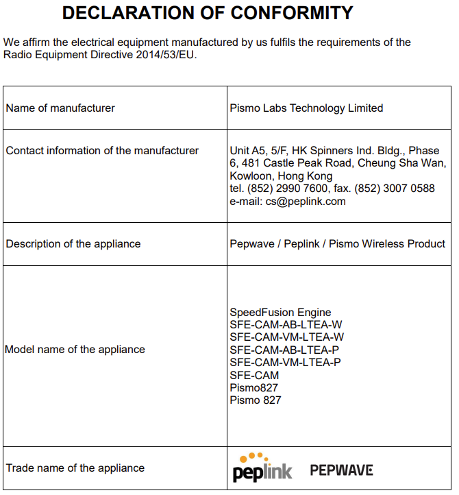 CE Statement for Pepwave Routers ( SpeedFusion Engine )